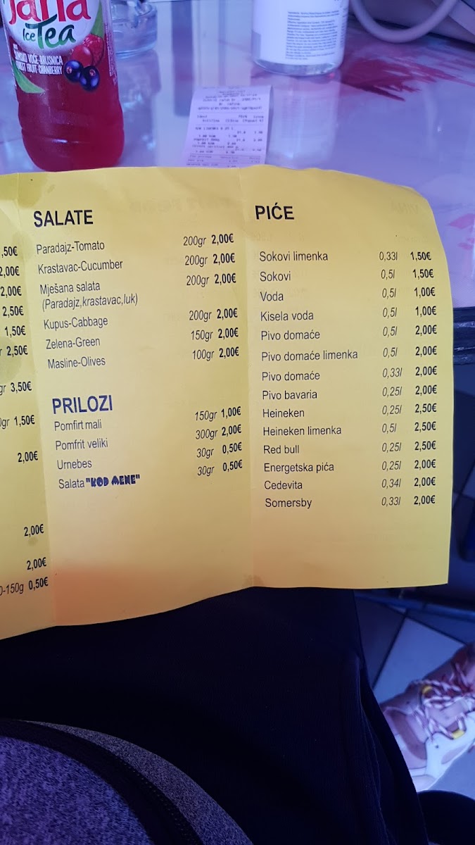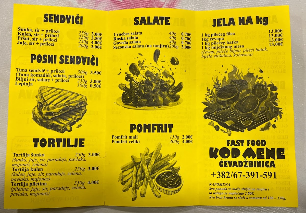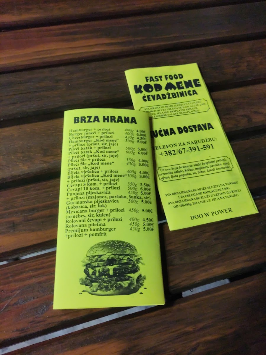 fast food 'kod mene' Menu